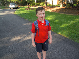 At the end of the day, I wasn’t sure what to expect, hopefully something good.  I figured I wouldn’t get much out of him as usual, being a guy and all.  Usually he just bolts and runs home to watch TV while I linger to chat.  So it was a very pleasant surprise when he bounded of the bus, absolutely beaming and exclaiming, “First grade is WAY better than kindergarten!”  When I asked about this teacher, he said, “She’s GREAT!”  Then he said that social studies was his favorite thing today even though they don’t have it until tomorrow.  Hey, whatever works, right?