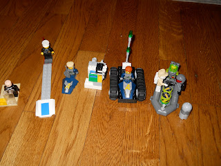 Lately he comes up with about five inventions a day that are the “best invention ever” with “lots of great details!” It is amazing how tiny, tiny, tiny these pieces are — like the size of a tick! I’ve been known to mistake a Lilliputian LEGO pistol for a speck of dirt. Now I need to use a magnifying glass before vacuuming for fear of sucking up a bad guy’s visor or some diver guy’s oxygen tanks. All the more reason not to vacuum!