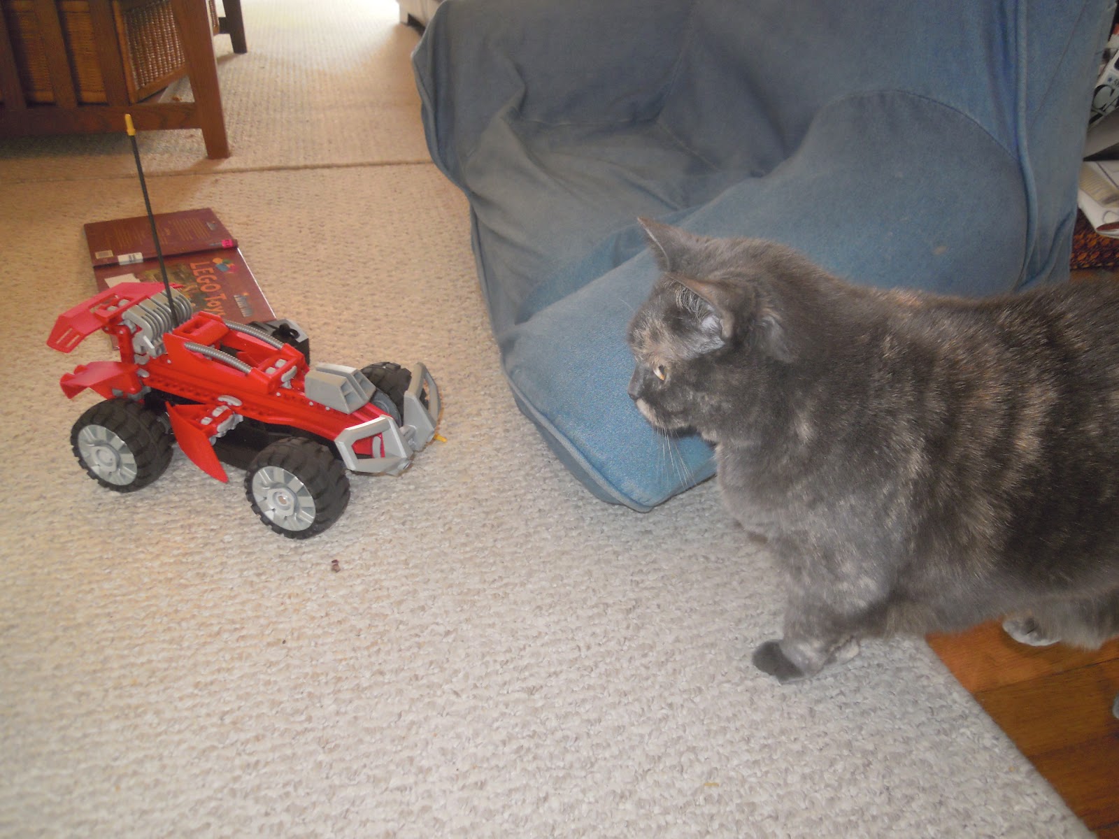 Here he is hugging the RC!  Alas, the poor Lego monster truck from earlier in the day is long forgotten.  And Louise is hiding wherever she can find cover so she doesn’t get run over.
