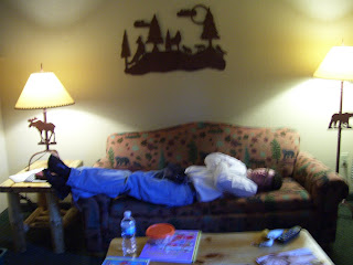 After a couple of hours in and out of the water, we were all smoked, headed back to the room, and innocently went in search of dinner.  We ordering a pizza at the main restaurant, decorated tastefully in the mountain lodge style like the rest of the hotel.  However, there we experienced the hands-down worst pizza I have ever had in my life — BY FAR.  (In case you think I was overly critical, that was Daddy Mac’s take as well.)  Here’s a not-so-juicy tidbit for you – the tomato sauce on it was straight tomato paste, honest to God, and there was not one bit of spice on the entire pizza.  Anything should have tasted divine to us because we were so ravenous.  That’s how bad it was.