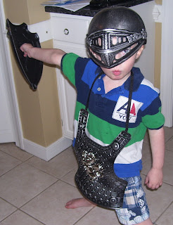Anyway, moving right along, today he was feeling much better than yesterday for which I am thankful — to a point. If anything, I was feeling way worse, achy with no energy whatsoever, lethargic, and dealing with a non-stop headache. The combination of a hyper four-year-old who has been cooped up far too long with a croupy forty-something mommy is not one that I recommend. Of course, he was all a-chatter with nonsense, bouncing off the walls, and wanting us (me) to go to the attic and pull out all of the Halloween decorations even though it is only September 18. And the list goes on.